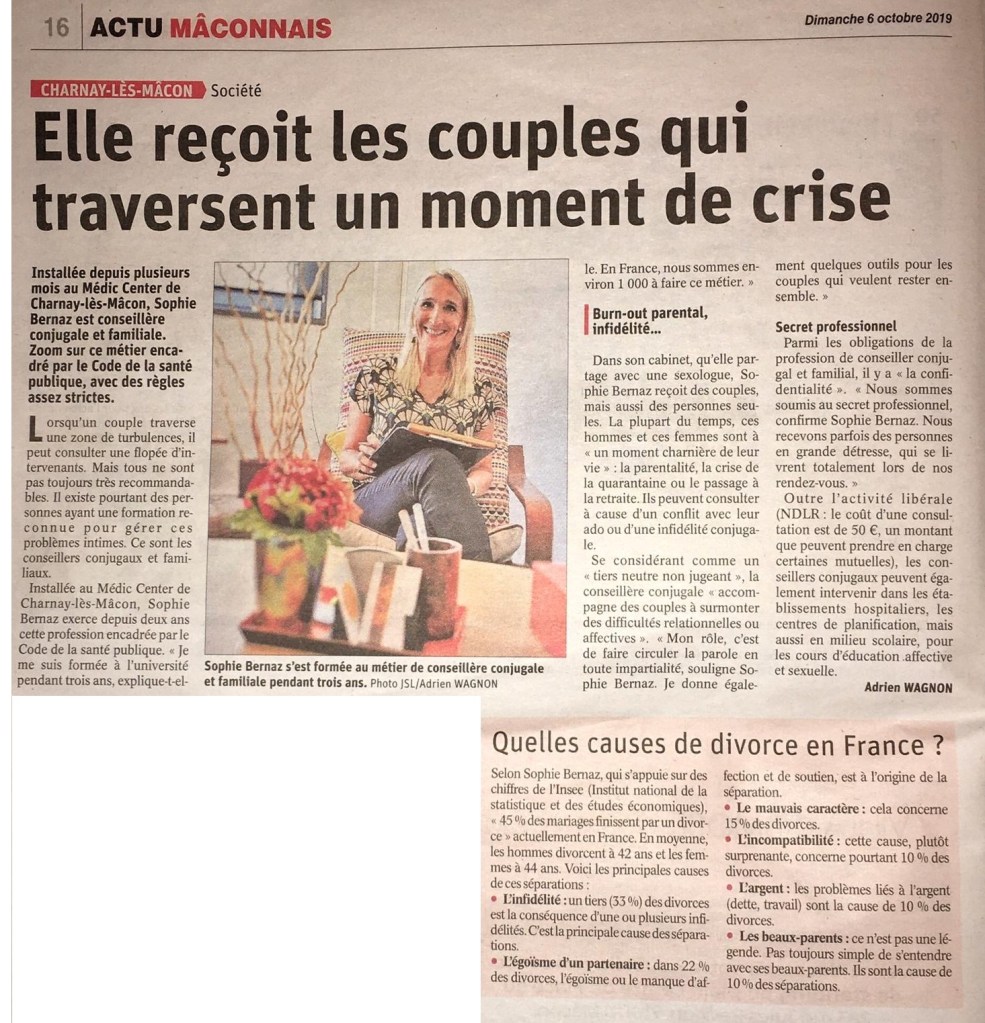 Quoi de plus concret pour découvrir mon approche que de me lire? Merci au Journal de Saone et Loire – Octobre 2019
